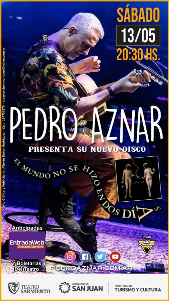 El cantante, multiinstrumentista, compositor y poeta argentino, Pedro Aznar, presenta en San Juan su último trabajo discográfico: «El mundo no se hizo en dos días».