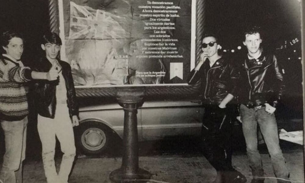 La imagen es célebre y es una foto perfecta de un momento clave. Detrás de un cartel alusivo a la Guerra de Malvinas se adivina un Ford Falcon, presumiblemente verde. De un lado están Julio y Federico Moura, del otro Stuka y Pil Trafa. Podría ser un acompañamiento al clima de la época pero era todo lo contrario: eran Virus y Los Violadores pateando el tablero, metiendo una cuña en un movimiento que empezaba a entender que no estaban todos en la misma balsa, que todo oleaje artístico implicaba un oleaje de ideas, posturas y visiones. El rock local ya tenía discusiones estéticas, pero dos de sus referentes de comienzos de los ’80 estaban decididos a instalar una discusión ideológica.