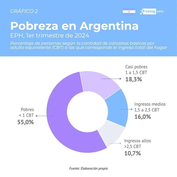 73,3%: el verdadero número de la Pobreza en Argentina. Tres cuartas de la sociedad argentina ‘malviven’, pero aún seguimos hablando de un país de clase media», publicó la CELAG en su cuenta de X.
