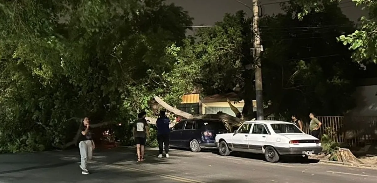 El incidente ocurrió anoche en calle 25 de Mayo, donde una pesada rama se desprendió y aplastó una Volkswagen Suran.