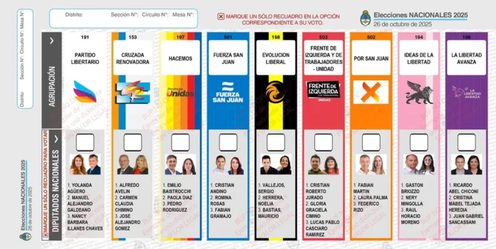 La Boleta Única está diseñada para que el votante encuentre de manera clara toda la oferta electoral. En ella, cada agrupación política cuenta con su columna identificada por un color, logo y número de lista, además de las fotos de los dos primeros candidatos titulares y los nombres de los tres postulantes que compiten por las bancas en juego.