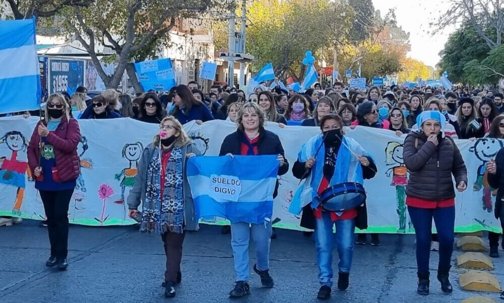 Este lunes, los docentes sanjuaninos volvieron a marchar por las calles en lo que se convirtió en la quinta manifestación que hacen de este tipo en las últimas 2 semanas. Los educadores marcharon para pedir una recomposición salarial acorde a la inflación. Esta vez rechazaron el acuerdo paritaria alcanzado entre el Gobierno y los gremios el sábado en la madrugada pasado.