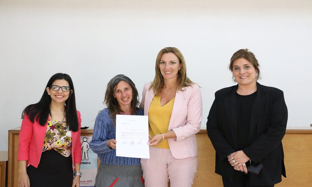 La diputada Celina Ramella junto a las legisladoras Marcela Monti y Fernanda Paredes hicieron entrega de la resolución que declaró de interés cultural la participación de la artesana sanjuanina, Guadalupe Daneri, en el Art Shopping Paris 2022 en el Carrusel del Museo del Louvre a desarrollarse en la semana Internacional del Arte Contemporáneo en el mes de octubre. La distinción fue llevada a cabo en el Hall Central del edificio Legislativo.