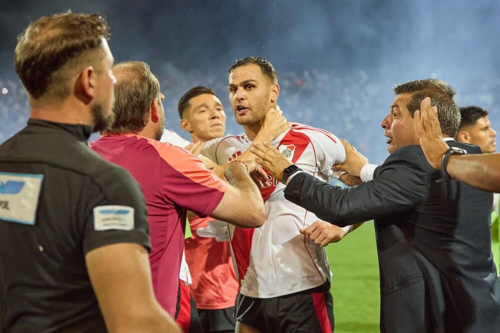 No dio la talla. Faltó juego, asociaciones, temple y sobraron errores, desinteligencias, nerviosismo. La derrota 2 a 1 de River ante Independiente Rivadavia, en Mendoza, anuló la ilusión de los millonarios de batallar por el título. Ocho puntos separan al equipo que conduce Marcelo Gallardo del líder Vélez, con 12 unidades en juego. El gol de Ham, en el noveno minuto de adicional, decretó la caída y avivó el escándalo en la cancha y en el gimnasio del estadio Malvinas Argentinas, con una persecución de jugadores a Sebastián Villa y escenas que multiplicaron el descontrol. El final fue caótico, con corridas, gestos y golpes.