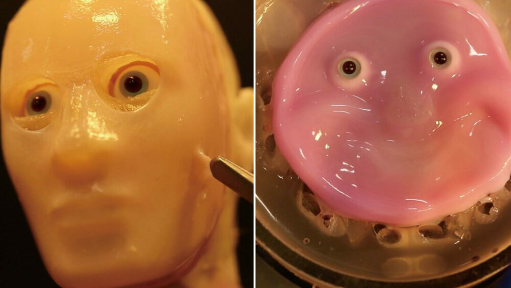 «En este estudio, logramos replicar la apariencia humana hasta cierto punto, creando un rostro con el mismo material de superficie y estructura que los humanos», indicó Takeuchi. En un artículo publicado este martes en Cell Reports Physical Science, los autores afirmaron que construyeron una cara robótica recubierta con un análogo de la piel, capaz de expresar sonrisas.
