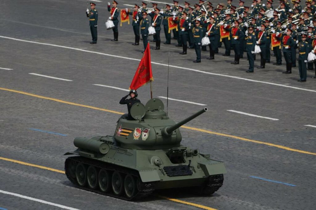 El desfile de equipo militar, que incluye un total de 131 vehículos, lo encabezó el emblemático tanque soviético T-34-85. A continuación, fueron los vehículos blindados Taifún con módulos de combate a control remoto, vehículos de combate de infantería BMP-2, BMP-3 y Kurganets-25 de nueva generación, así como tanques T-72B3M, T-90M y los T-14 Armata.