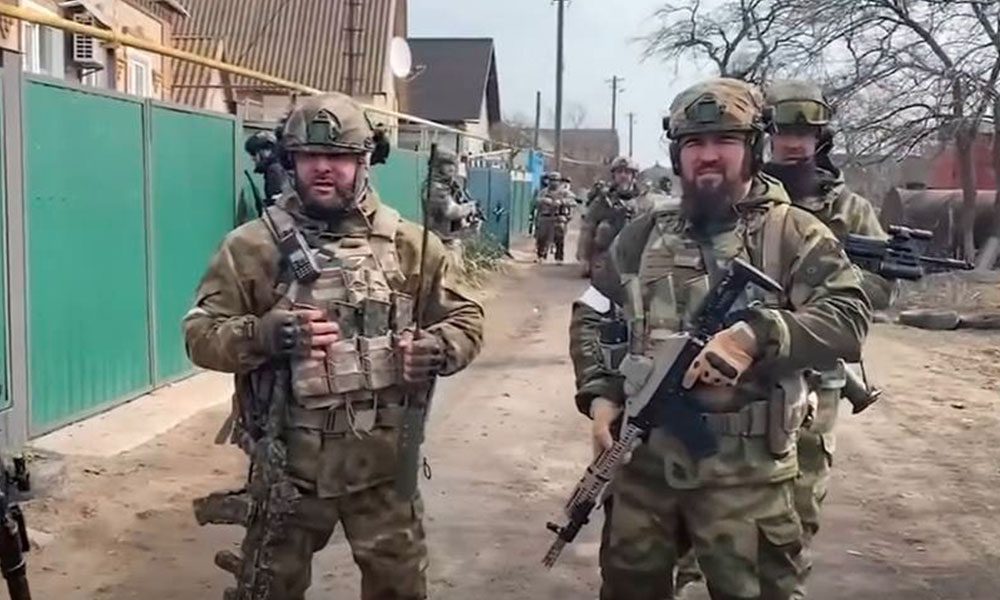 En cuanto a la ciudad portuaria de Mariúpol, hay una fuerte actividad contra los cercados batallones nacionalistas Azov atrincherados en la gigantesca planta siderúrgica Azovstal, permanentemente bajo fuego de artillería y prácticamente destruida mientras los combates ya están en el centro de la ciudad. Hay muchos videos de las fuerzas chechenas peleando casa por casa y edificio por edificio. De uno de ellos es la portada de esta nota.
