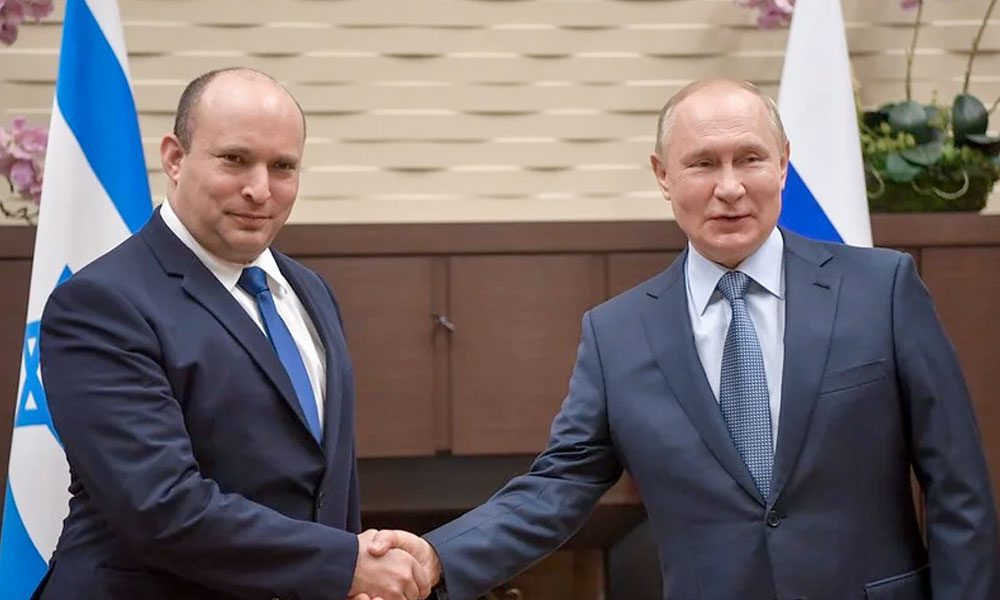 Putin y el primer ministro israelí, Naftali Bennett, se reunieron en Moscú a pedido de Zelenski para servir como mediador, discutieron sobre la actual situación en torno a Ucrania en el Kremlin. Tras finalizar la visita a Rusia, Bennet llamó a Zelenski y se dirigió a Berlín para reunirse con el canciller alemán, Olaf Scholz.