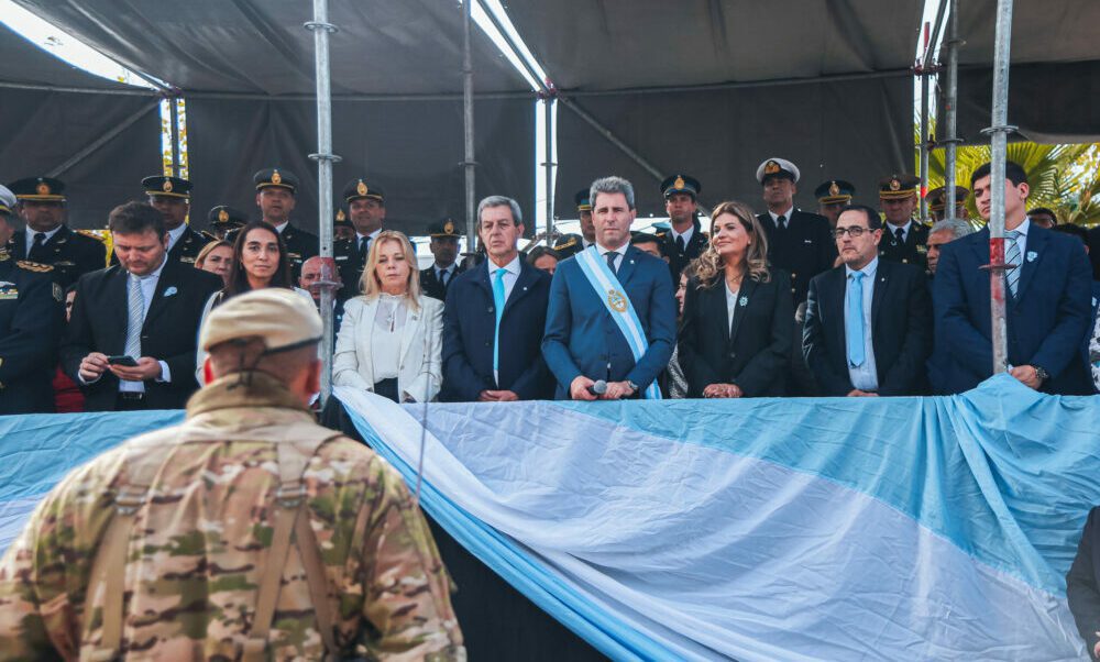 A su llegada, el primer mandatario agradeció la presencia de autoridades y demás asistentes al acto y expresó que «este es un día más que importante. A 213 años de aquella gesta patriótica, tenemos que recuperar ese legado y hacer que esta patria tenga espacio para todos. Consolidar lo construido r ir por las cosas que nos faltan”.