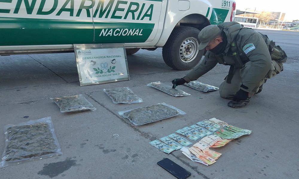 El Personal del Escuadrón Núcleo “San Juan” interceptó un ómnibus de larga distancia y detectó que un pasajero transportaba seis bolsas con más de 1 kilo de cannabis sativa.