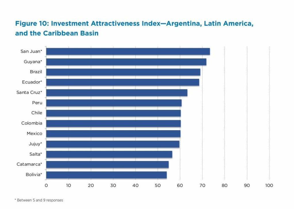 La provincia no solo aparece como la más atractiva de Argentina, sino que se ubicó como la más atractiva de Latinoamérica, superando a países como Chile, Perú y México, tradicionalmente mineros.