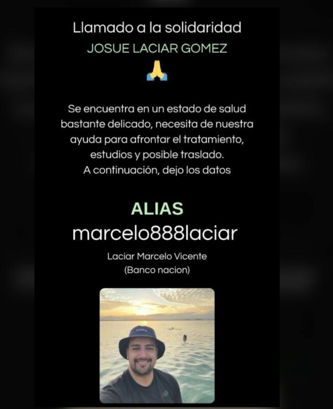 Se trata de Josué Laciar Gómez, también conocido como Gino, quien fue diagnosticado con leucemia y, ahora, requiere de un largo y costoso tratamiento. Allegados dijeron que el joven está «con un complicado pronóstico».