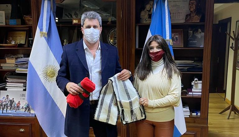 Cabe destacar que Díaz, le entrego al gobernador, Sergio Uñac un presente de parte de los 475 tejedores y tejedoras que pertenecen al programa Hilar San juan.