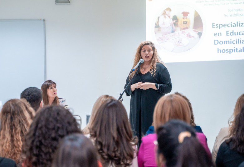 “Esta especialización en educación domiciliaria y hospitalaria es un llamado al corazón y al profesionalismo docente. Acá hay un plus porque en esta modalidad nos ponemos en contacto con las personas más vulnerables del sistema educativo, con los que no pueden asistir a la escuela. Algunos no pueden por un tiempo, otros indefinidamente, entonces el docente en estos casos es quien tiene el desafío de llevarles conexión con la vida saludable, dentro de un hospital o una casa que parece una terapia”, destacó Mariela Lueje, secretaria de Educación.