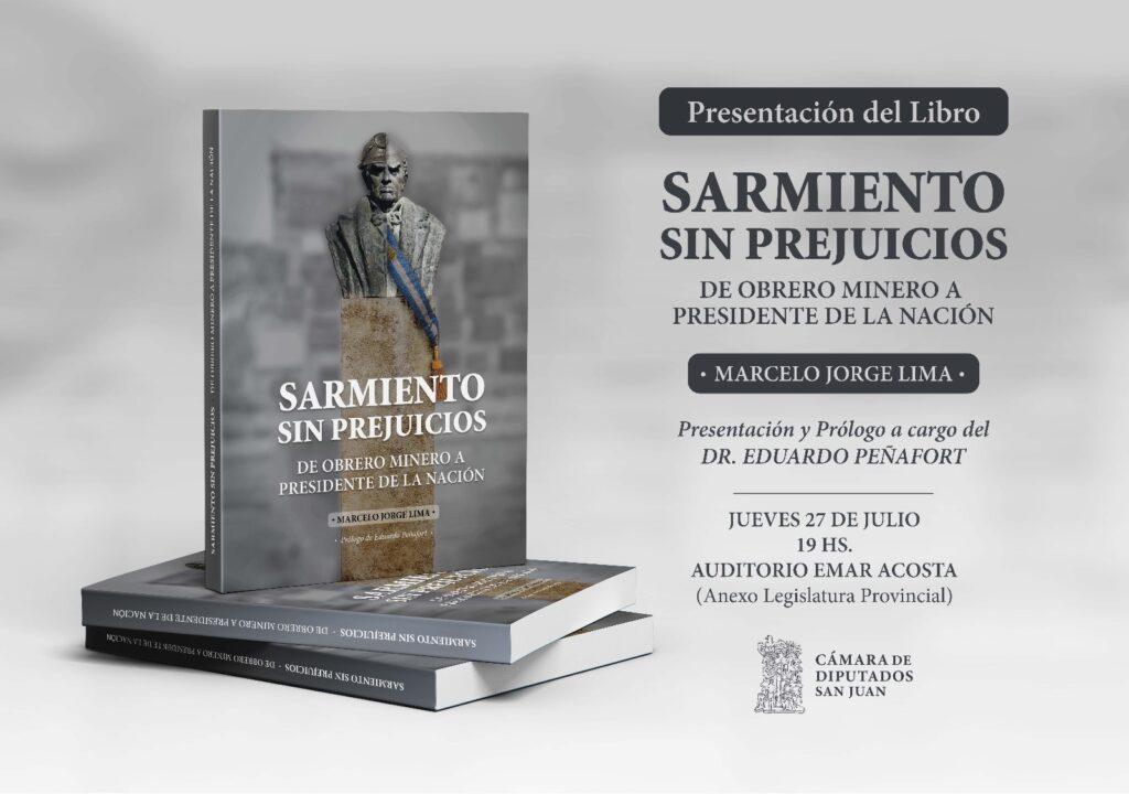 El cortista sanjuanino, Dr. Marcelo Lima, presentará su libro el próximo 27 de julio en la Legislatura. «Sarmiento sin prejuicios.De obrero minero a presidente de la Nación” se llama la obra, en la que recorre la bio del prócer desde una nueva mirada.