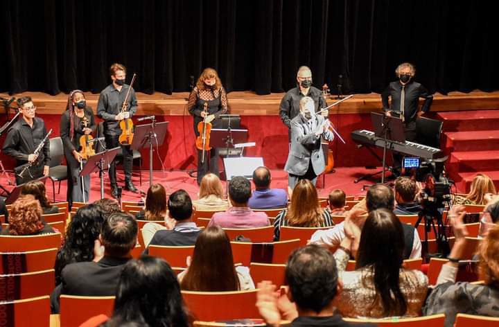 De esta manera, las voces de la soprano Monika Skowron y el barítono Fernando Lázari fueron las protagonistas de estas piezas, acompañadas por Oliva en el piano; un quinteto de cuerdas, con Indira González en primer violín; Alex Zuzuk, en segundo violín; Raina Djankova, en viola; Vesselin Yanakiev, en violonchelo; Diego Vega, en contrabajo; también Gaspar Videla, en Clarinete; Marcelo Guirado, en percusión y una pareja de baile integrada por Paula Albarracín y Nicolás Canto. Además, las artistas Silvina Martínez e Isabel Rostagno estuvieron a cargo de la estética visual, los vestuarios y proyecciones afines, contando con Emiliano Voiro, en Iluminación; Juan Manuel Noguera, en proyecciones 3D y la colaboración de Emanuel Díaz Ruiz. Asimismo, contó con la colaboración de la maquilladora Debora Bazan Flitt.