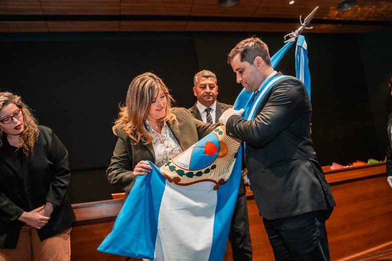 “Es un orgullo llevar en alto nuestra bandera. A quienes se van del cuerpo de banderas, gracias por todo lo vivido y brindado; y a los ingresantes les queda por delante un lindo camino por transitar, con mucha responsabilidad y respeto. En cuanto a las supervisoras y supervisores que comienzan a disfrutar de su jubilación no sólo dejaron huella sino que además son referentes en educación. Nosotros somos un equipo que escucha, por lo que serán personas de consulta permanente. Las puertas del Ministerio de Educación quedan abiertas”, señaló la ministra de Educación, Silvia Fuentes.