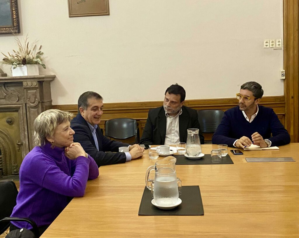 Antes del conversatorio fueron recibidos por autoridades y docentes de la UNPL en el edificio del rectorado. Se encontraban presente, Ayelen Sidun (Decana de la Facultad de Periodismo y Comunicación Social de la UNLP, Leonardo Gonzalez (Dr. en Comunicación y Secretario de Investigación Científica), Héctor Bernardo (Director del Observatorio Latinoamericano de Comunicación y Procesos Políticos de la Facultad de Periodismo y Comunicación Social), y Telma Luzzani (Escritora, profesora universitaria y periodista especializada en política internacional).