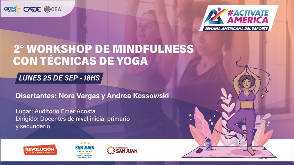 El departamento Capacitaciones dependiente de la Dirección de Políticas Educativas e Inclusivas de la Secretaría de Deportes, organiza e invita al “2º Workshop de Mindfulness con Técnicas de Yoga”, disertado por Nora Vargas y Andrea Kossowski y dirigido a docentes de nivel inicial, primario y secundario.