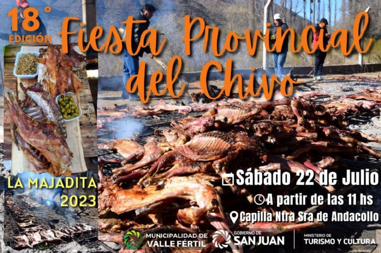 La tradicional Fiesta Provincial del Chivo que fusiona la gastronomía vallista con manifestaciones artísticas, se realizará el próximo sábado 22 de julio, a partir de las 11 horas en la localidad de La Majadita, en el departamento Valle Fértil.