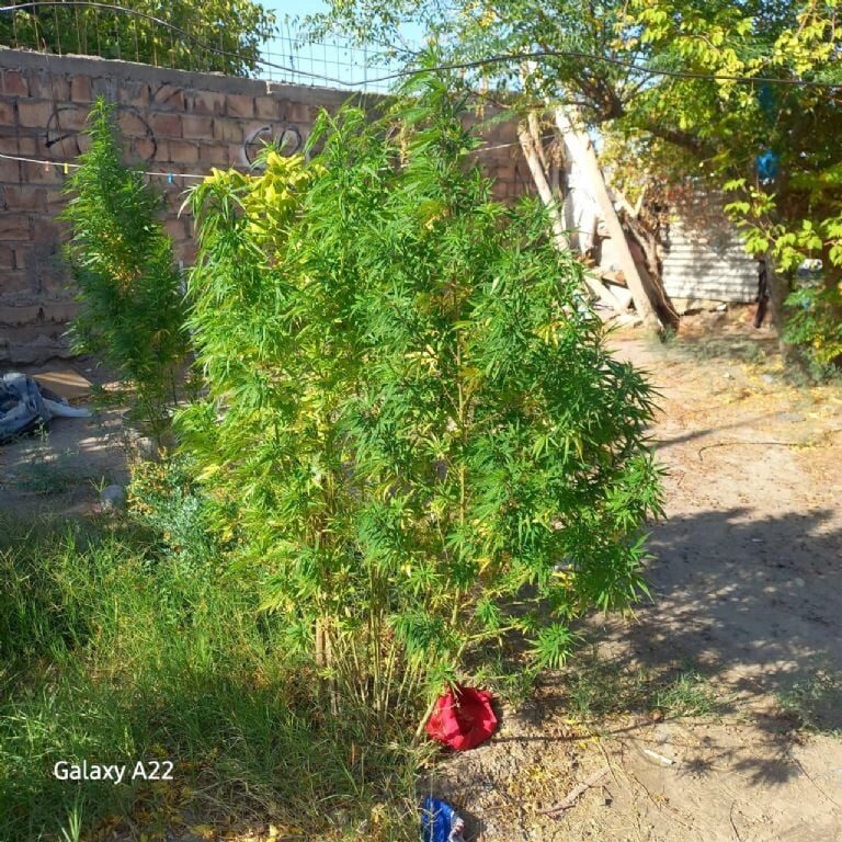 Si bien inicialmente no se encontraron elementos relacionados con el objeto del mandato judicial, los efectivos realizaron una inspección minuciosa en el fondo de la propiedad, donde detectaron un hallazgo sorprendente: plantas de color verde, con un fuerte olor característico de la marihuana.