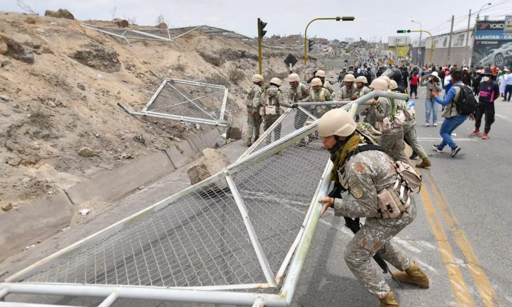 Un grupo de alrededor de 200 personas rompió las barreras de seguridad de una parte del aeropuerto Alfredo Rodríguez Ballón, en Arequipa, al sur de Perú, como parte de las protestas masivas que ocurren en el país andino desde diciembre pasado para pedir la salida de la presidenta Dina Boluarte.