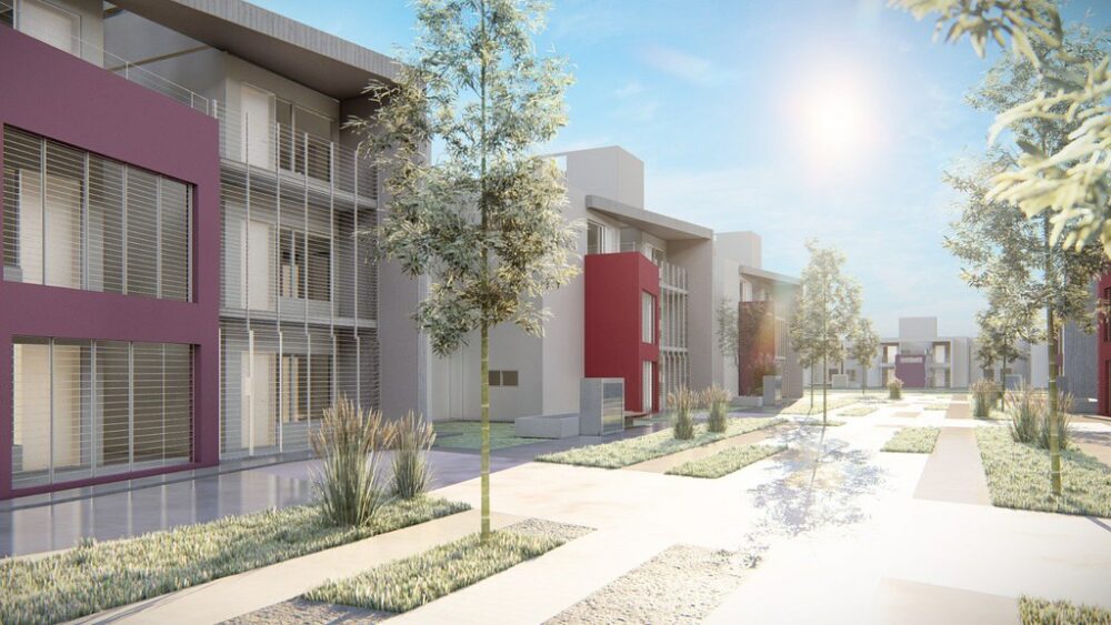 El complejo habitacional contará con 112 departamentos, diversificados en tres prototipos que superan los 64 metros cuadrados. El proyecto contempla dos dormitorios, baño, estar comedor, cocina y lavadero.