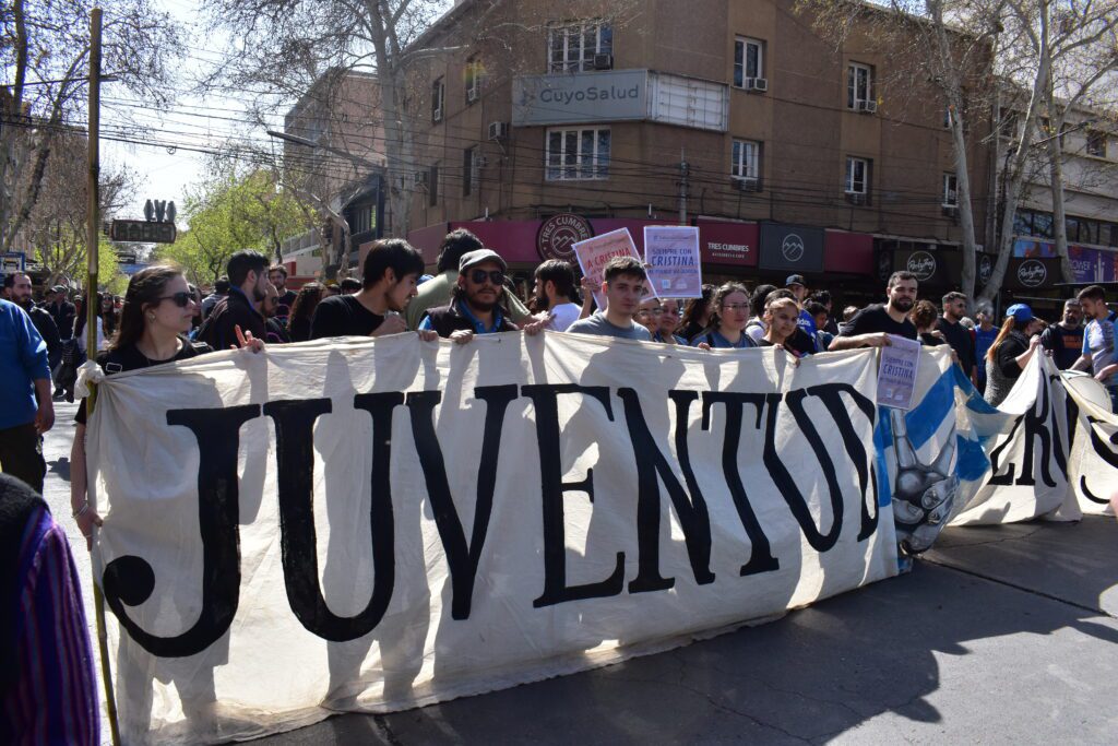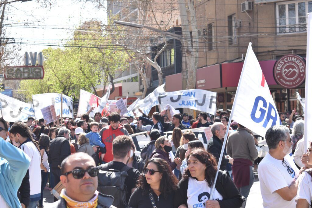 «Somos soldados del pinguino, Llevamos la doctrina del general peron, Lo que yo siento por este movimiento se defiende en la calle, Poniendo el corazon» se escuchá cantar a los militantes peronistas mas jóvenes, parte de la Federación Universitaria de San Juan, quienes con redoblantes y vengalas acompañan la movilización.