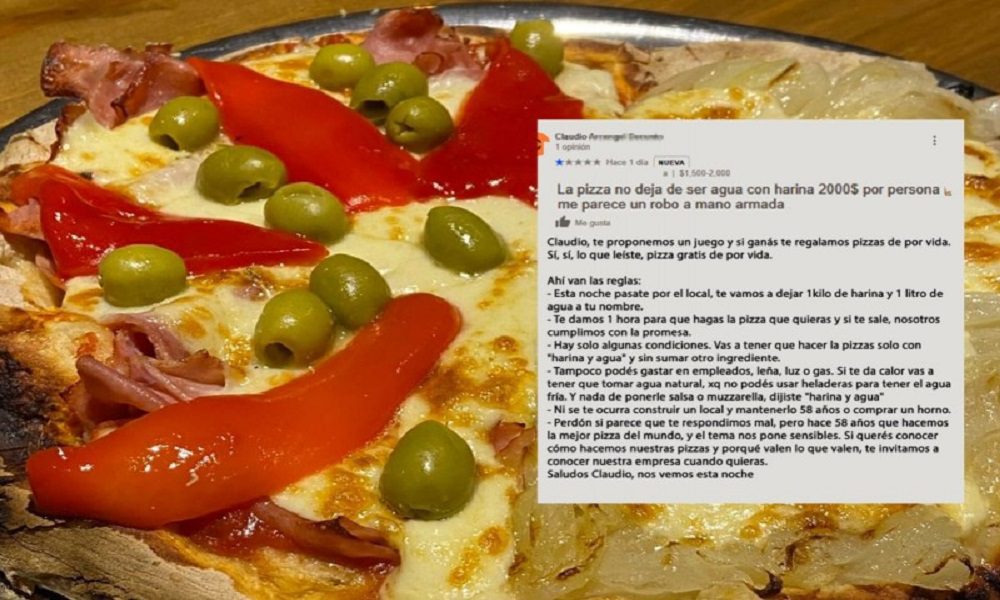 Desde sus redes sociales el comercio compartió la queja del comensal que escribió: «La pizza no deja de ser agua con harina. $2000 pesos por persona me parece un robo a mano armada», plasmó Claudio en la página de la pizzería.