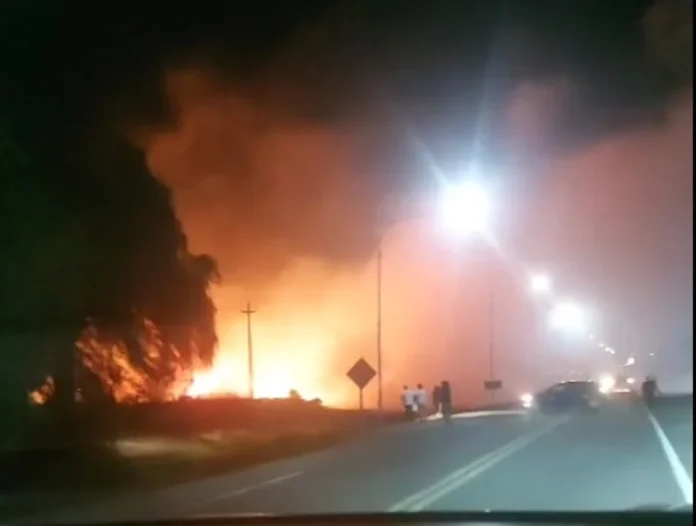 En la noche de este sábado se desató un incendio en Albardón que genera mucho miedo en los vecinos. Un video registrado por un automovilista que pasó por el lugar da cuenta de la gravedad del siniestro, ya que las grandes llamas iluminan la oscura zona y ponen en riesgo viviendas cercanas al lugar del foco.