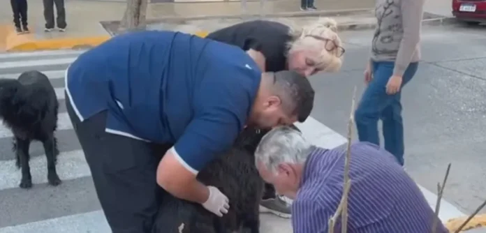 Transeúntes de la capital sanjuanina, en compañía de un veterinario, rescataron a un perro que estaba dentro de una acequia y tenía un caño incrustado.
