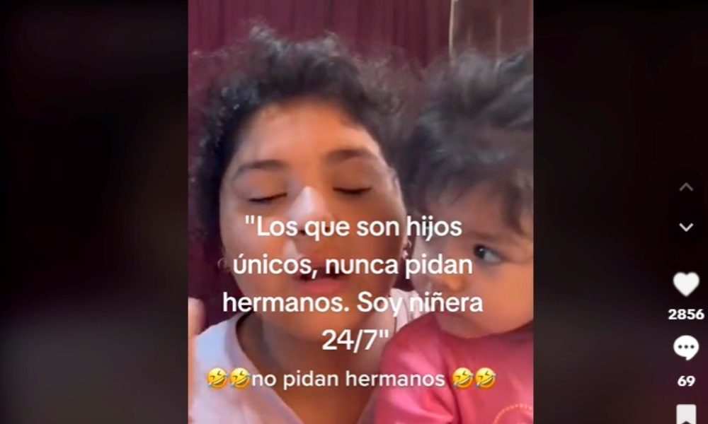 Una niña cansada de ser hija única pidió a sus padres un hermanito. «Soy niñera todo el día», exclama entre queja y chiste. El video se viralizó en redes sociales causando millones de vistos.