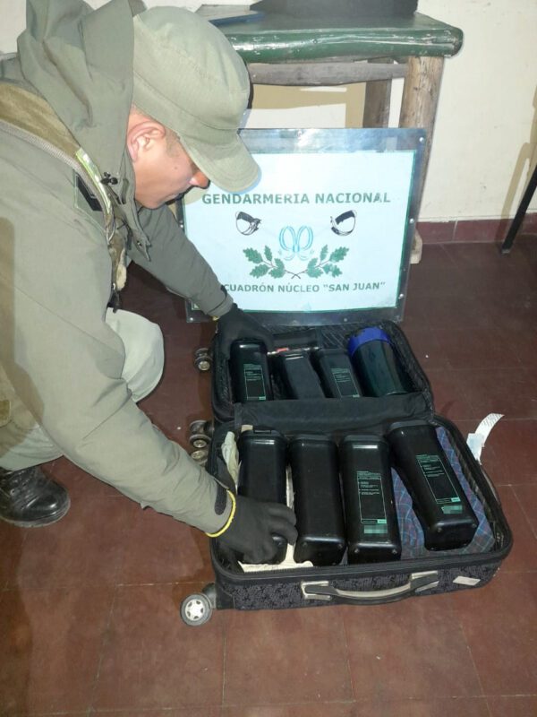 Integrantes del Escuadrón Núcleo “San Juan” realizaban controles sobre la Ruta Nacional N° 141, departamento de Caucete, cuando procedieron a inspeccionar un transporte de pasajeros. Al requisar el sector de equipajes, los uniformados hallaron la marihuana acondicionada en recipientes plásticos de color negro.