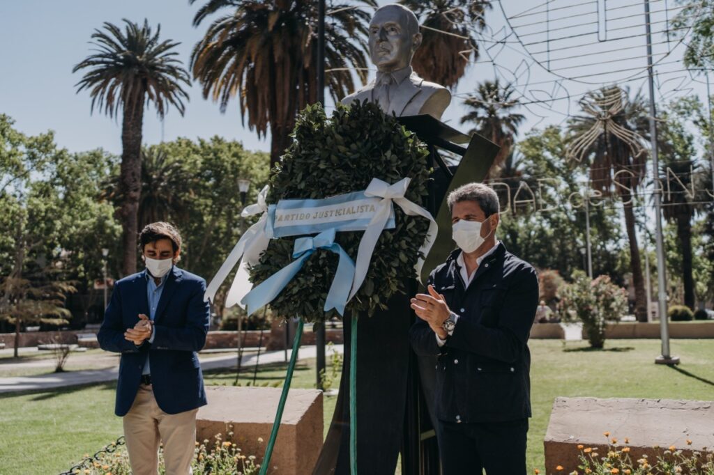 El Gobernador de San Juan y presidente del Partido Justicialista encabezó la colocación de ofrendas en el busto del Gral. Juan Domingo Perón en Capital