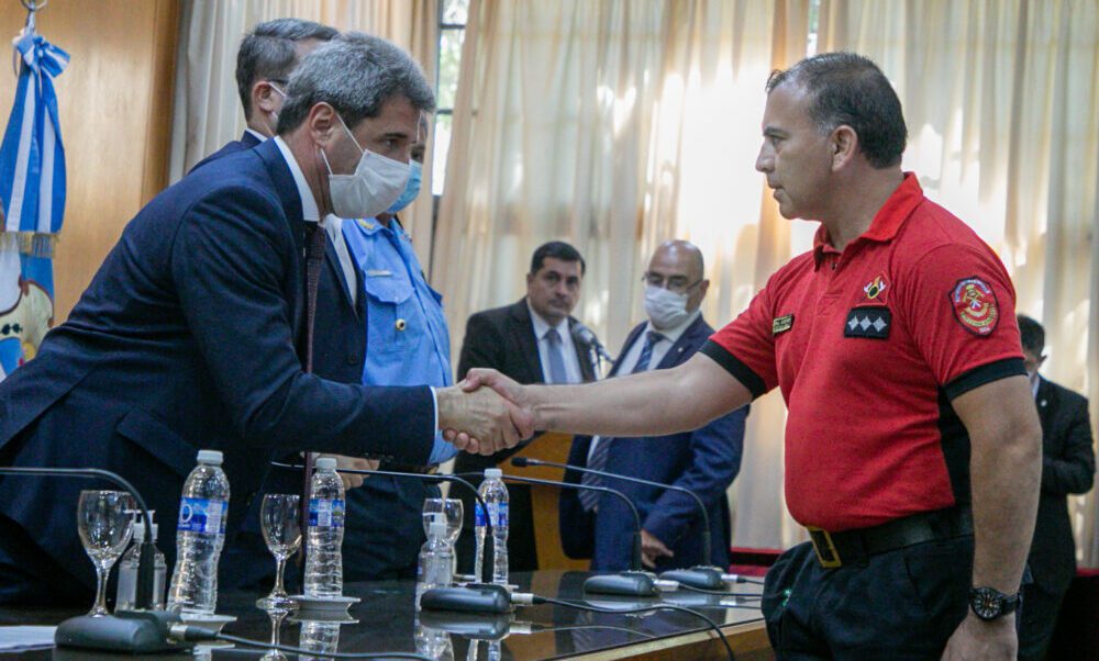 A continuación, Munisaga expresó: “Quiero trasmitirles el orgullo y la satisfacción que nos han generado al trabajar al lado de ustedes. A cada uno de los que han integrado esta misión, al personal sanitario, a los encargados de coordinar la misión, al personal de Bomberos de la Policía de San Juan y a todos los que participaron. Nos han dejado muy bien a la provincia y han demostrado con orgullo y entera satisfacción lo que es la vocación de servicio”.