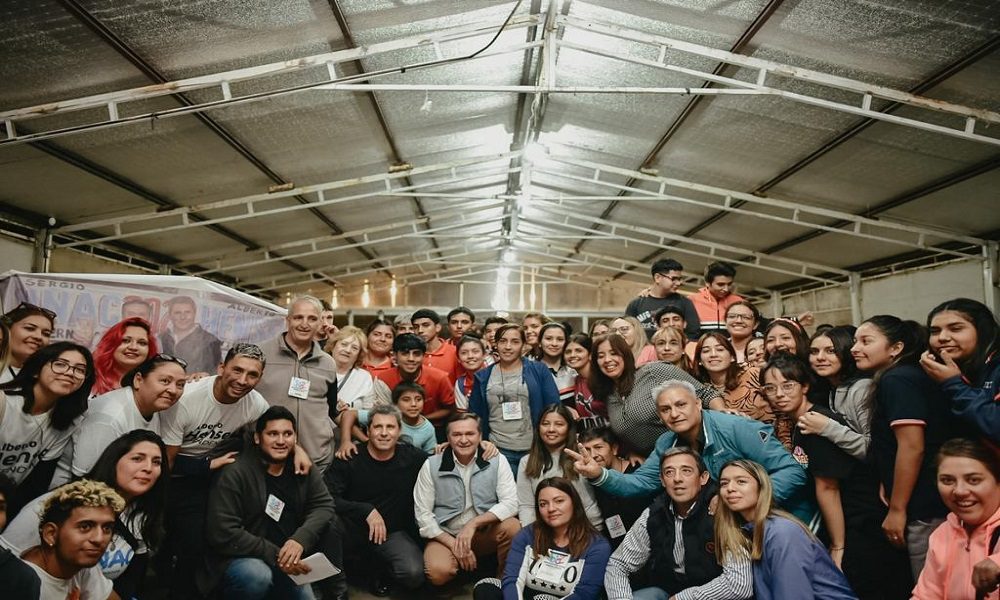 Junto al candidato a intendente Alberto Hensel, el gobernador compartió un momento con jóvenes estudiantes en el Camping de la Cámara de Comercio en Media Agua, donde, obviamente, no faltó la foto grupal para el recuerdo.