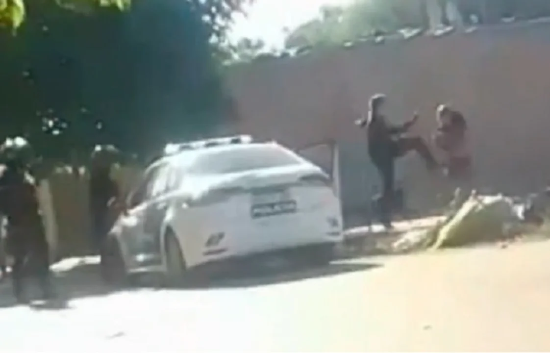 En medio de la confusión, uno de los agentes reaccionó violentamente, propinando patadas y trompadas a una joven (presuntamente menor de edad) y a su madre, a quien también golpeó con fuerza.