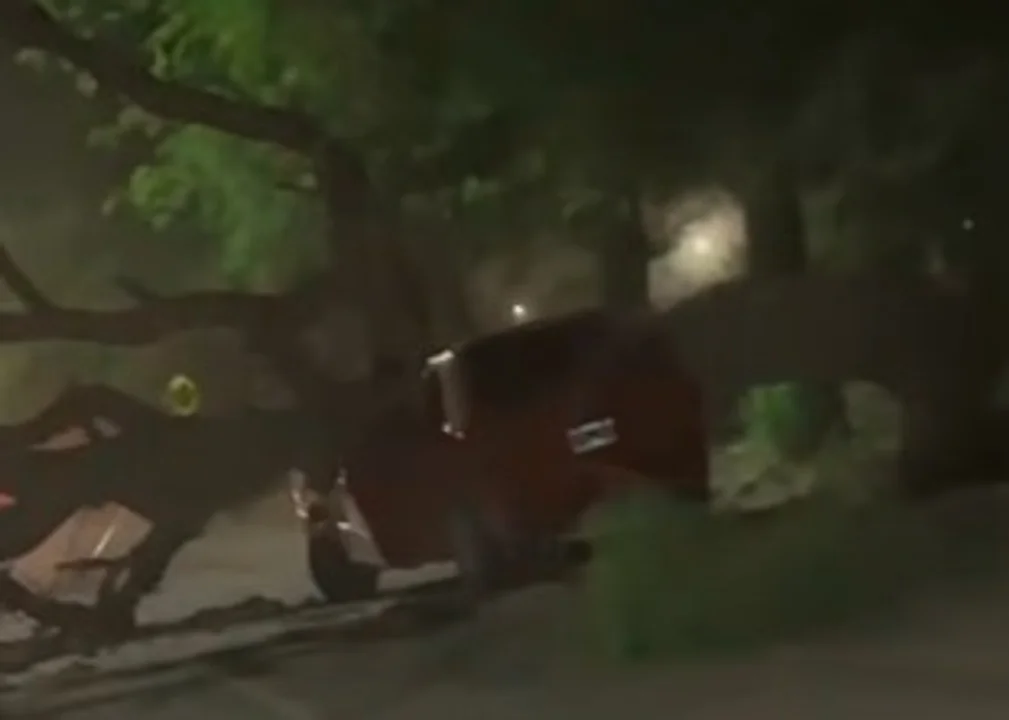 El hecho ocurrió frente al Servicio Penitenciario Provincial, sobre calle Benavídez, minutos antes de la medianoche. De acuerdo con las primeras informaciones, el vehículo se desplazaba por la zona cuando una ráfaga de viento derribó un árbol de gran tamaño, que terminó aplastando parte del techo y el parabrisas del auto.