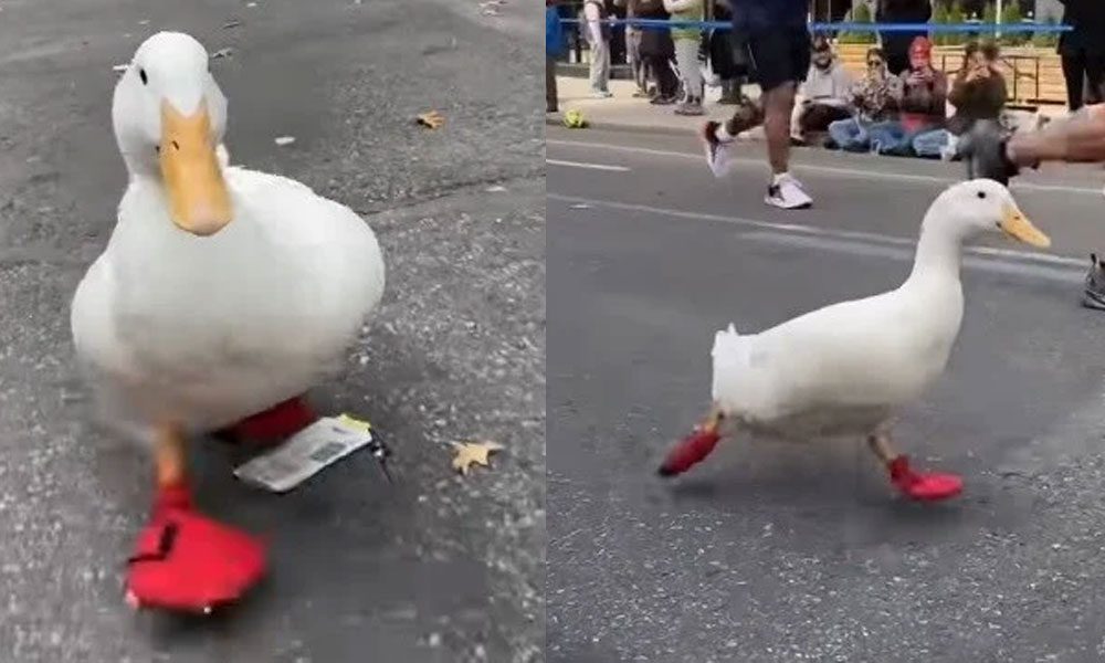 Los fotógrafos que cubrieron la Maratón de la ciudad de Nueva York de este año disfrutaron de una experiencia extraña y adorable: uno de los atletas que competía era un pato que llevaba zapatillas de correr rojas.