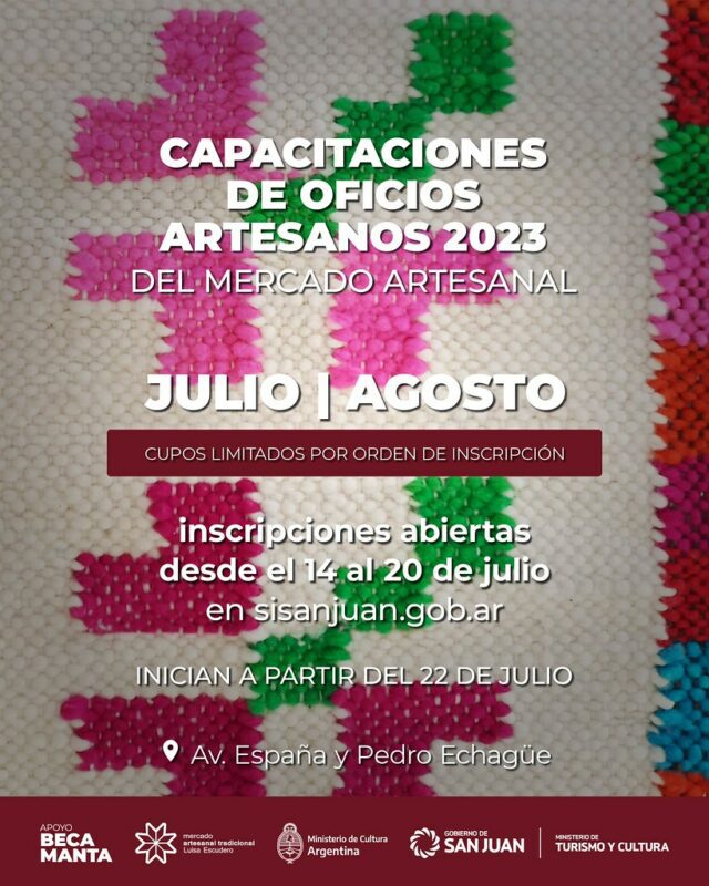 En el marco de las estrategias de formación, el Ministerio de Turismo y Cultura a través del Mercado Artesanal Tradicional Luisa Escudero, presenta un nuevo calendario de capacitaciones en oficios, realizados en contraprestación por artesanos que han sido beneficiados con la beca MANTA.